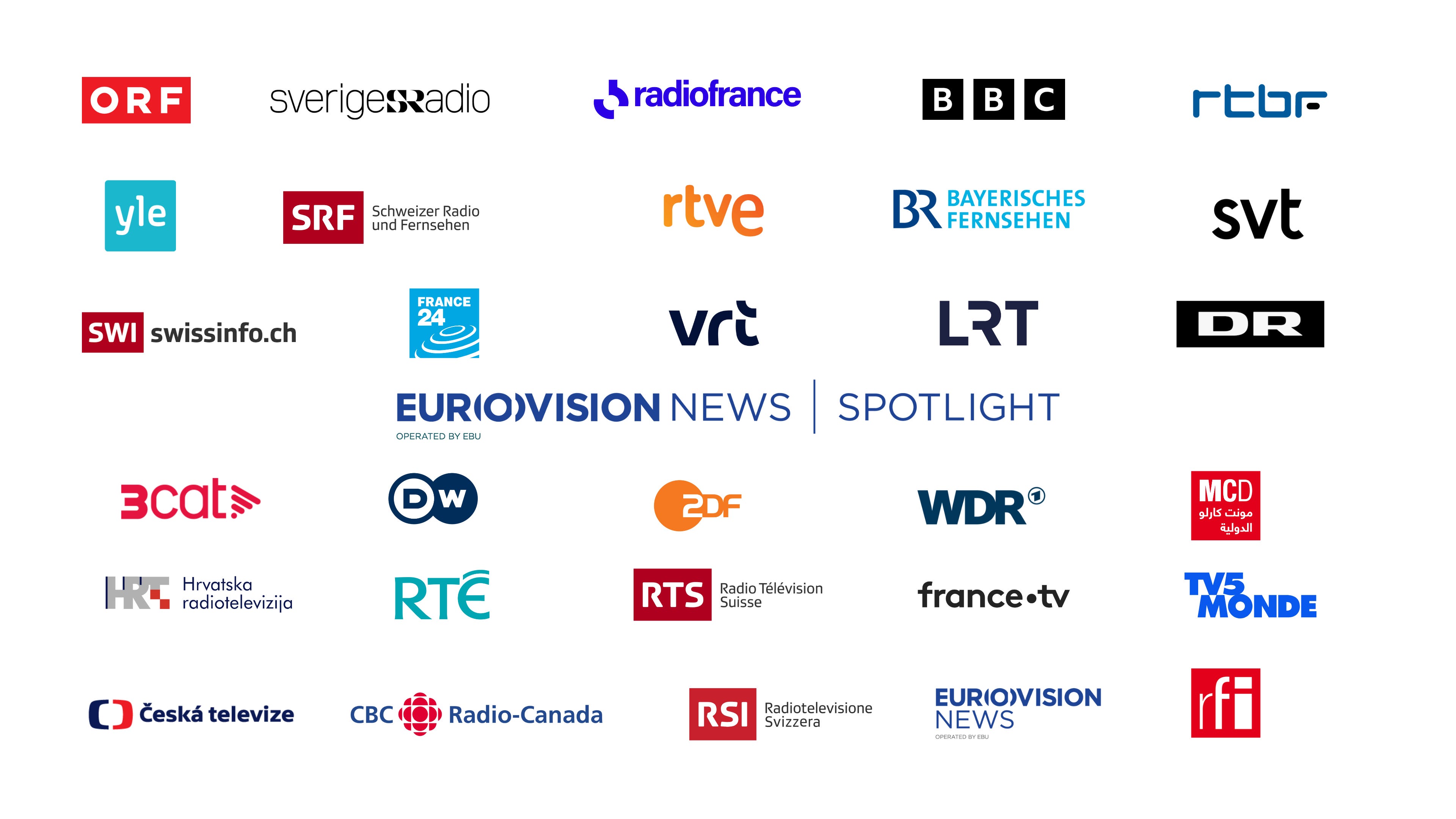 We are a coalition of the world’s most respected public broadcasters. Our network includes experts from: ORF (Austria), VRT (Belgium), CBC / Radio-Canada (Canada), HRT (Croatia), Česká televize (Czech Republic), DR (Denmark), Yle (Finland), France Télévisions (France), Radio France (France), RFI (France), France 24 (France), Monte Carlo Doualiya (France), TV5MONDE (France, Belgium, Switzerland, Monaco, Canada), DW (Germany), ZDF (Germany), BR (Germany), WDR (Germany), RTÉ (Ireland), LRT (Lithuania), RTVE (Spain), 3CAT (Spain), Sveriges Radio (Sweden), SVT (Sweden), SRF (Switzerland), RTS (Switzerland), RSI (Switzerland), Swissinfo (Switzerland), BBC (United Kingdom).