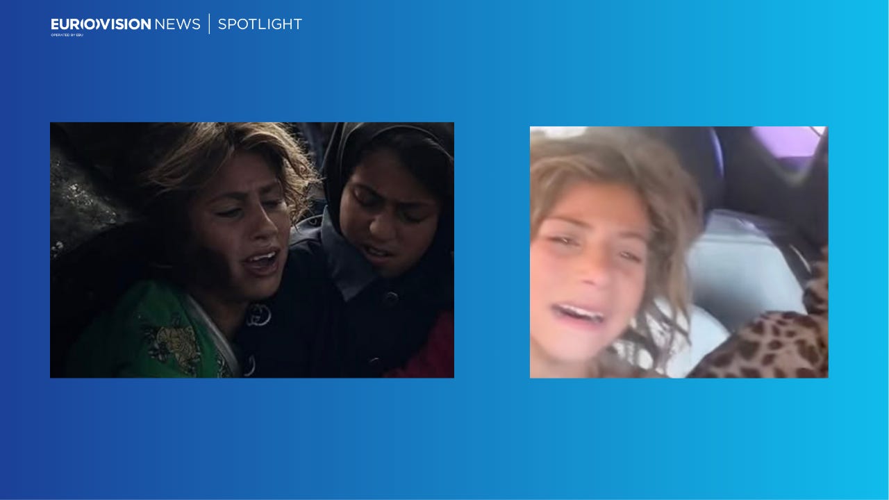 A girl seen crying out as she is desperately trying to get food at a charity kitchen has been juxtaposed with another video showing a similar-looking girl in the backseat of a car crying as she is reportedly being evacuated after a bombing.
