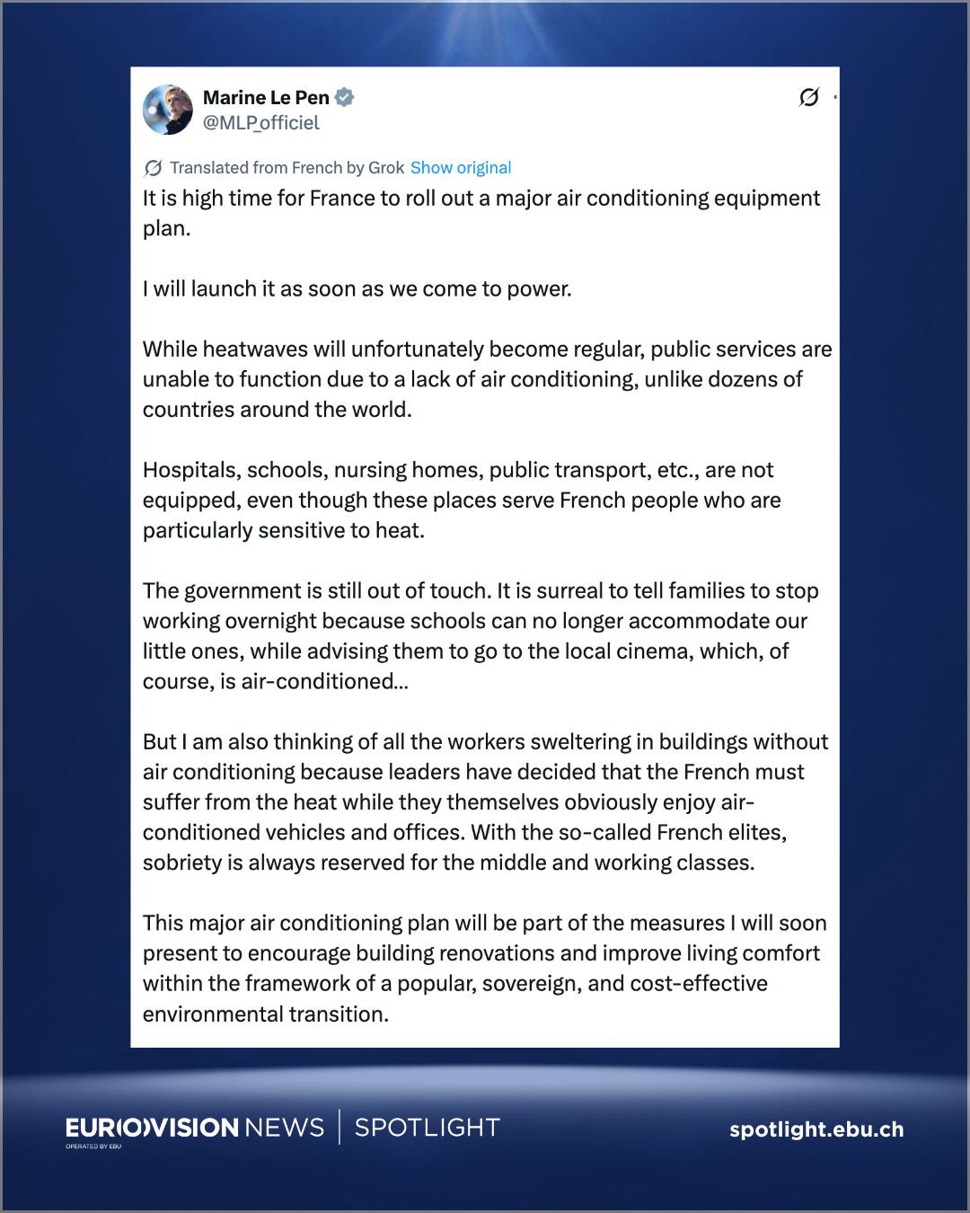 Writing for France Info’s Vrai ou Faux, Thomas Pontillon reported on comments by National Rally MP Yoann Gillet, who stated that “no scientific study shows that air conditioning is harmful to the environment. None.” His comments came as the party was calling for a major plan to install air conditioning in buildings like schools, hospitals, and workplaces.