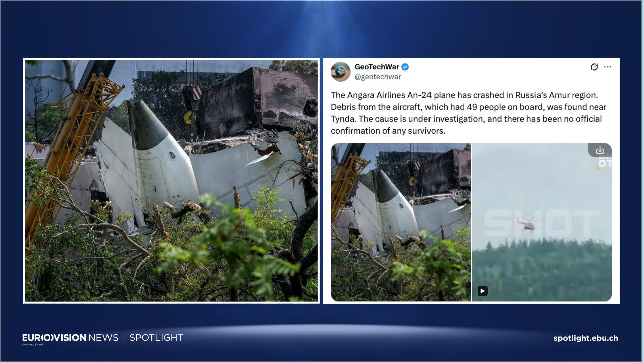 CLAIM: Several photos circulated on social media claim to show the Angara Airlines flight An-24 after it crashed in Russia’s Far East Amur region.