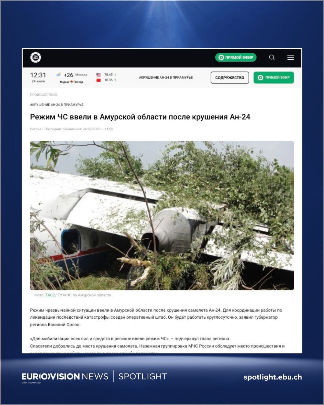 Mir24. (2025). Режим ЧС ввели в Амурской области после крушения Ан-24 [online] [Accessed 24 Jul. 2025].
