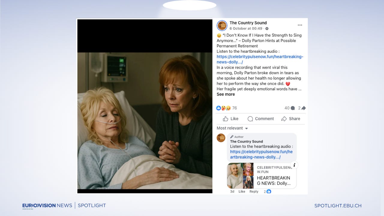 The Facebook post sparked dozens of news reports while fans feared Dolly’s health situation was serious. Tributes flooded social media, as did AI-generated imaginings of Dolly Parton on her deathbed, being visited by tearful fellow country star Reba McEntire.