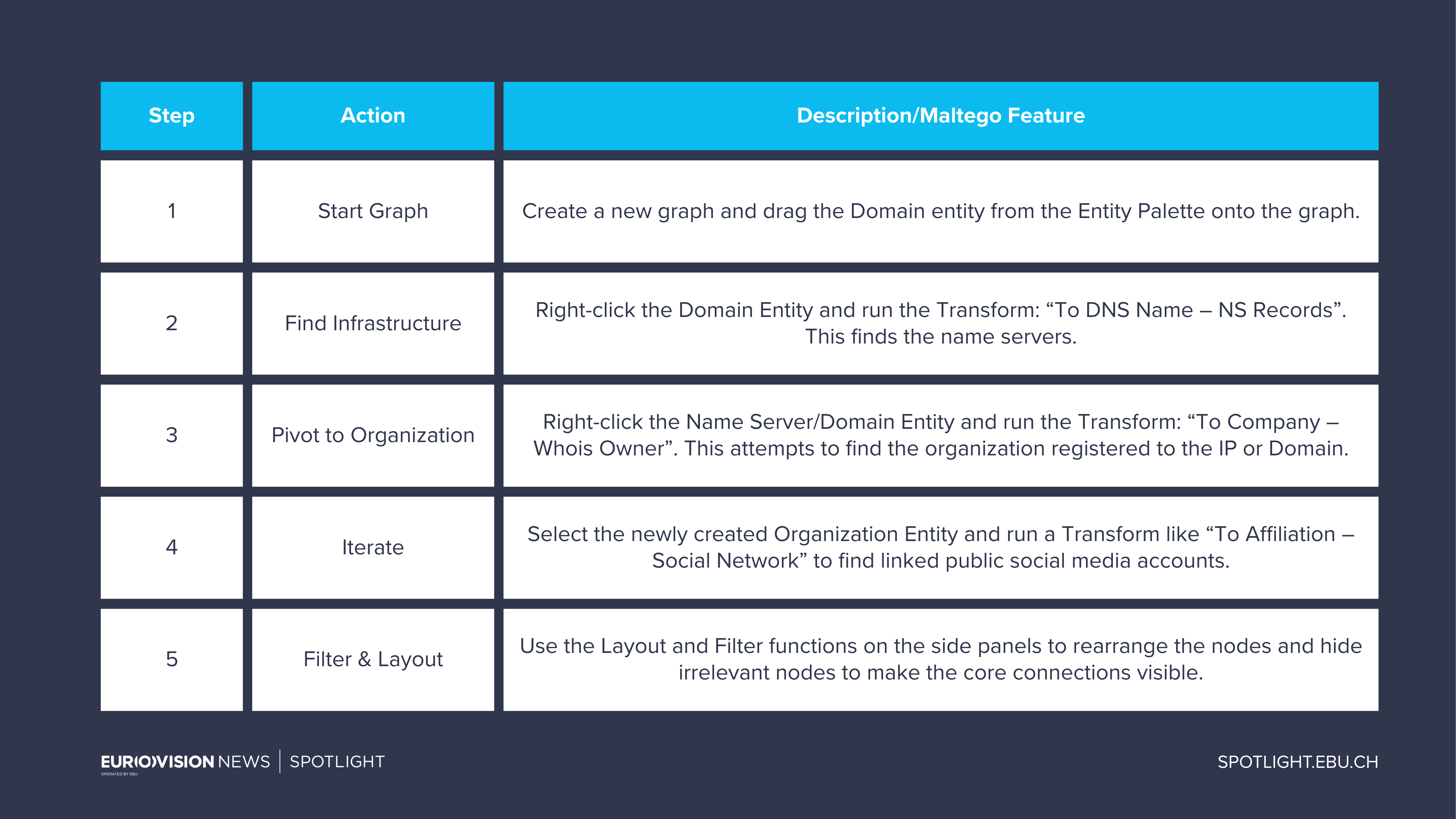 Pivot wisely: In Maltego, only run Transforms that will yield relevant data to avoid cluttering the graph with noise.
