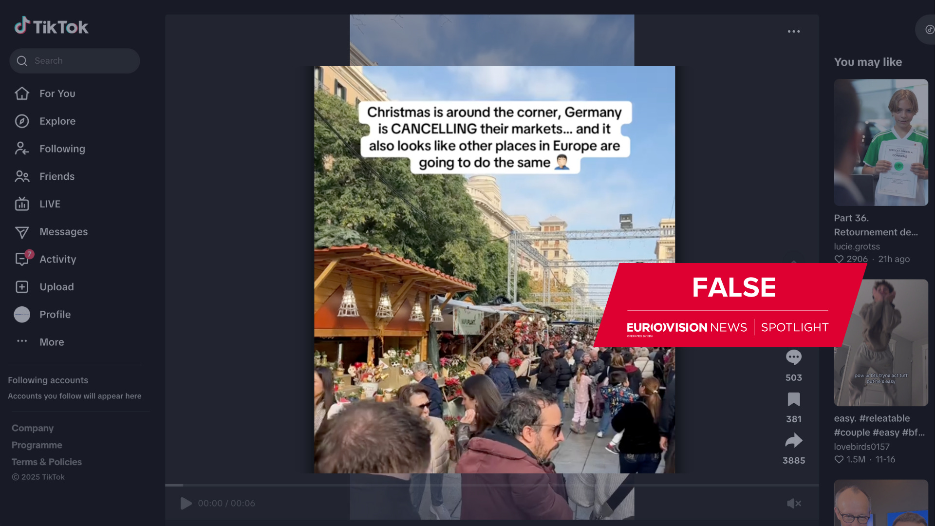 For example, a video (archived here) circulated on TikTok with the caption “Christmas is around the corner, Germany is CANCELLING their markets… and it also looks like other places in Europe are going to do the same.” The video had over 700,000 views as of December 4.