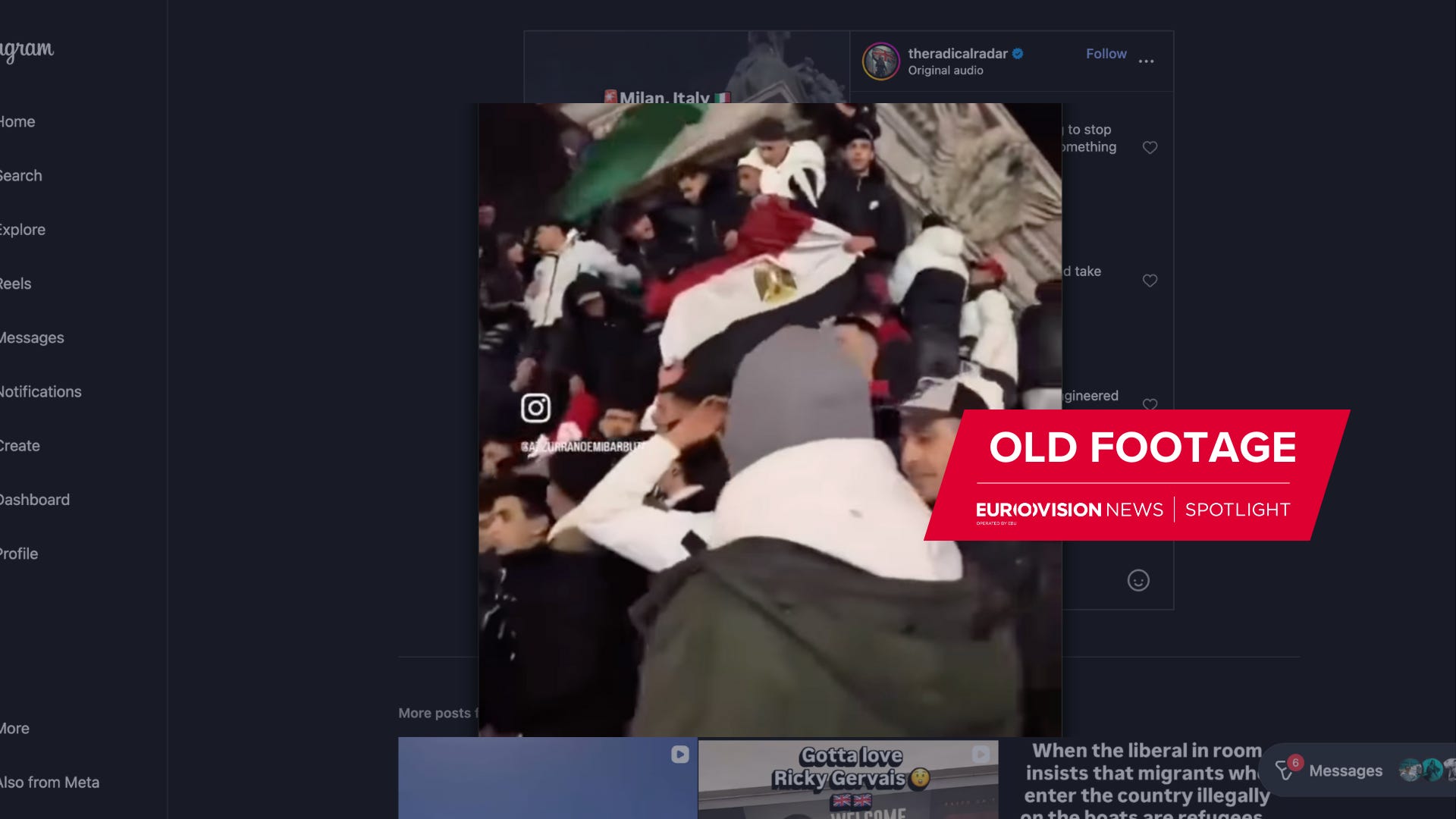 Similarly, on November 28, social media users on Instagram and X (archived here and here) started sharing a video claiming it featured Muslim protesters in Milan disrupting the opening of Christmas markets in the Duomo square. In the footage, several protesters waving Palestinian, Egyptian, and Tunisian flags, among others, climbed the square monument, chanting.