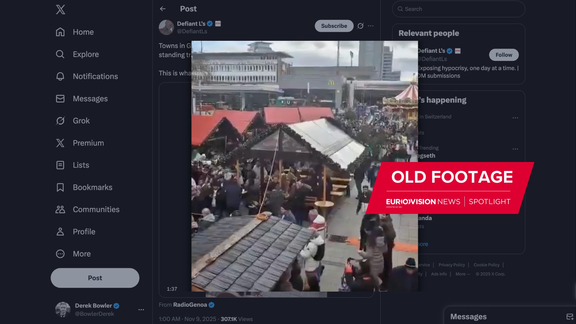 Similarly, a social media account with a history of publishing misinformation, @Radiogenoa, shared a video (archived here) on X on December 1, claiming it showed immigrants surrounding Christmas markets and calling for Islamic jihad.