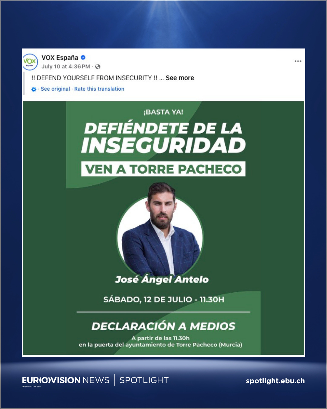 On the same day that over 33,000 racist hate messages circulated online, Torre-Pacheco witnessed a demonstration with the slogan "Defend yourself from insecurity".
