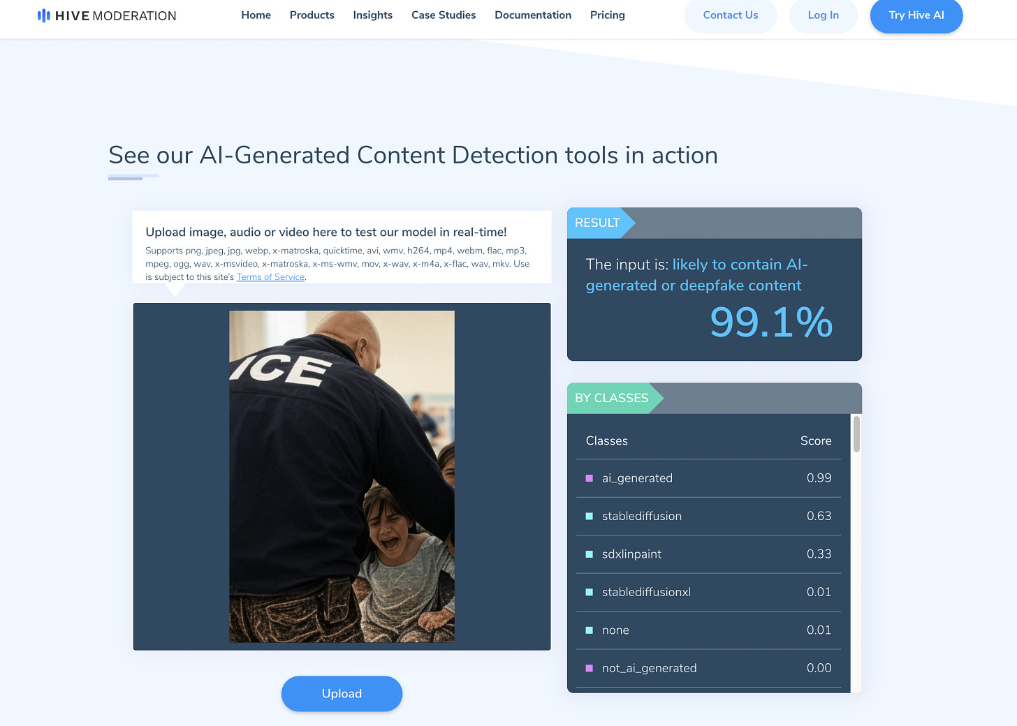 To confirm our suspicions, the ESN team contacted the uploader directly, who confirmed he generated the image through AI to illustrate the experience children at the school might have had during the supposed ICE visit