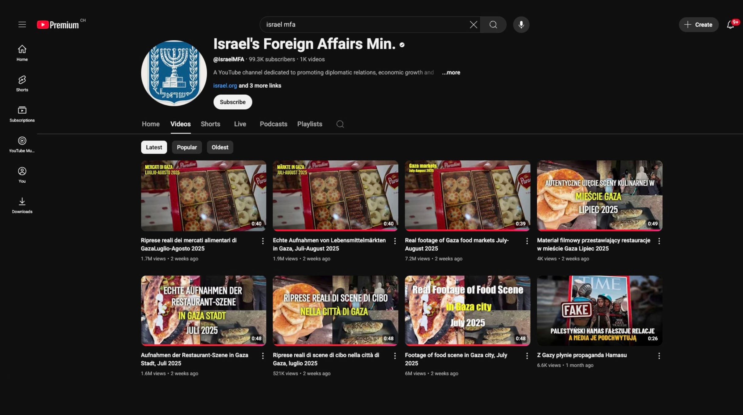 On the surface, Israel's Foreign Affairs Ministry YouTube channel appears to be a conventional extension of state communication. It is a verified account that publishes press statements, cultural programming, and diplomatic messaging. With over 1,072 videos, nearly 100,000 subscribers, and activity dating back to December 2008, the channel presents itself as a tool of digital diplomacy—projecting Israel's image globally, well beyond the reach of traditional embassies and press offices.