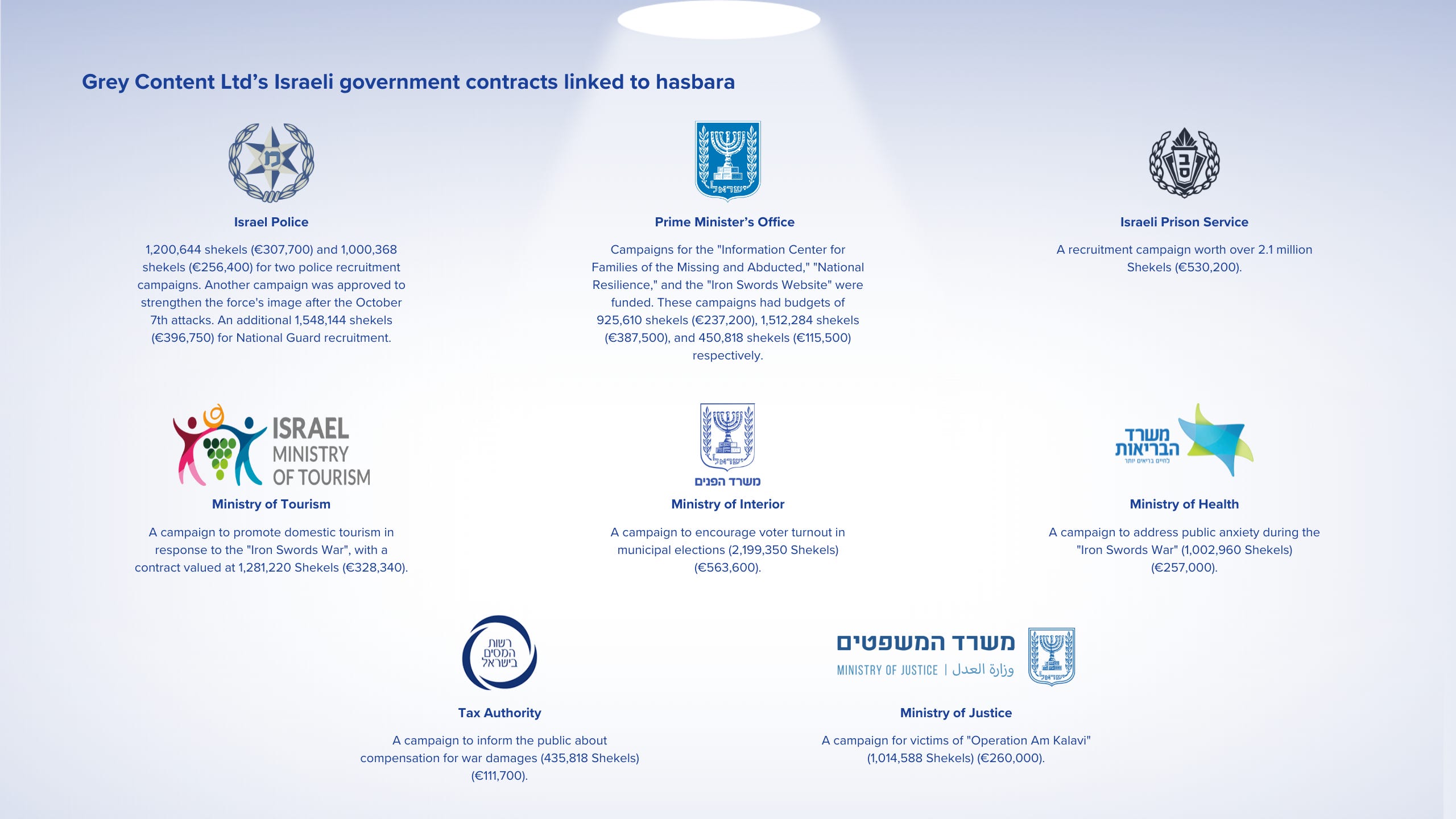 The documents show that the hasbara efforts are not only about promoting a positive image, but also about actively discrediting and undermining critics. The government of Israel has long utilised its advertising agency to fund paid international campaigns aimed at European and North American audiences.