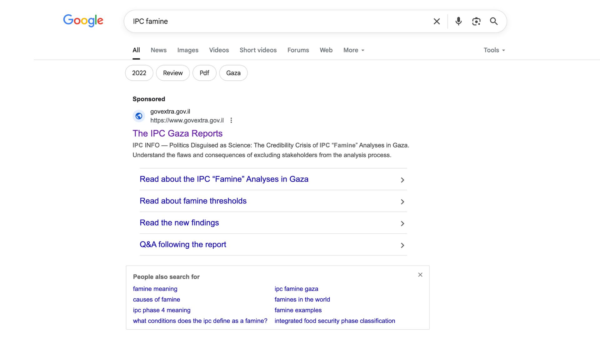 At the time of this report's publication, a Lapam-sponsored advertisement campaign encouraged readers to examine the "flaws and inconsistencies" in the IPC report that declared a famine in Gaza. This advertisement was strategically placed directly above the Google search results for the report itself, seemingly aiming to influence the first impression of users searching for information on the topic and direct them to an Israeli government website.